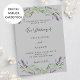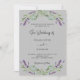 A light grey background decorated with lavender flowers and eucalyptus greenery. Personalize and your names and details.