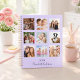 Faites votre propre collage photo de famille unique en cadeau pour votre mère, votre femme ou vous-même. Utilisez quatre, 9 de vos photos préférées de votre famille, amis, destination de voyage de rêve ou animal de compagnie! Personnalisez et ajoutez un nom et une année. Le nom est écrit avec un script de style moderne écrit à la main. Arrière - plan violet, lavande.