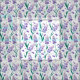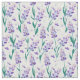 A floral pattern on white of simplistic lavender flowers arranged in an endless pattern. Each flower is coloured with watercolour in shades of purple, violet, green & lavender.