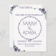 This elegant wedding details card features delicate purple watercolor roses and classic serif typography. It is designed to provide your guests with all the necessasry information for your big day in a clear, organized format.