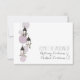 A wedding rsvp featuring an illustration of a group of lavender garden lanterns and lanterns filled with flower arrangements. Personalize the text on front and back.