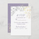 Elegant, modern, rustic floral lavender dusty purple wedding RSVP card with food choice, gilded silver and gold lace and simple calligraphy script.