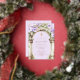 The floral arch and pastel palette evoke grace, purity, and celebration