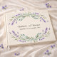 A beige, sand coloured background decorated with lavender florals and eucalyptus greenery. Personalize and add your names and wedding date.