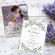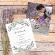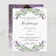 A white background decorated with lavender flowers and eucalyptus greenery. Personalize and your names and details.