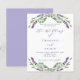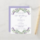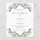 A white background decorated with lavender flowers and eucalyptus greenery. Personalize and your names and details.