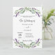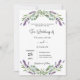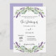 A white background decorated with lavender flowers and eucalyptus greenery. Personalize and your names and details.