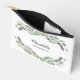 White background, black and purple text. Decorated with lavender flowers and eucalyptus greenery.
