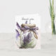 This design features a watercolor illustration of lavender flowers in a glass jar. Text reads, "Thank you." Inside of card is blank.