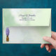 This watercolor floral wedding envelope features a vase full of beautiful lavender flower stalks set against a pastel sage green and lavender mix background. The inside envelope flap is a dark lavender that matches the return address on the outside envelope flap. Thanks for stopping by!