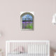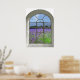 Lavender garden view, fake arch window scene, for a windowless office. Very realistic landscape optical illusion poster that would look great on an office or study wall.