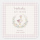 This delicate square sticker has been designed to provide a sweet finishing touch to your Baby Shower stationery. The design features a central illustration of a baby goose with a flower crown and watercolor effect, surrounded by a botanical wreath and a classic lilac gingham border. Its format is ideal for use as an envelope seal or as a personalized favor tag for guests.
