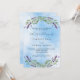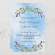 A white and blue sky as background decorated with lavender flowers and eucalyptus greenery. Personalize and your names and details.