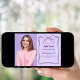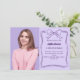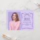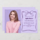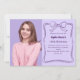 A lavender coloured background, decorated with a dark purple hand-drawn bow and frame. Personalize and add a photo, name and party details.