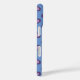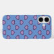 This iphone case features a repeating pattern of lavender hearts on a blue background.