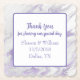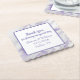 Lavender and white marbled looking wedding favour paper coasters, with custom text, in the middle. Personalize all the text fields for your wedding.