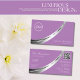 Very elegant lavender coloured business card design with a noble shimmery silver decor.