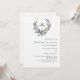 A white background decorated with a lavender flower and eucalyptus greenery wreath, crest. Personalize and your monogram, names and details.