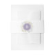 Simple, vintage, elegant dusty purple wedding invitation belly band with monogram initial and silver gold floral lace.
