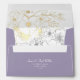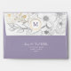 Simple, elegant, modern, boho dusty purple lavender wedding 5x7 envelope with unique, sophisticated silver and gold floral lace, return address and monogram at the top cover.