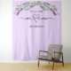 Violet, lavender coloured background, black text. Decorated with lavender florals and eucalyptus greenery. Mr Mrs with a heart. Personalize and add the wedding date and your family name.