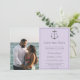 This Nautical Monogram Photo Save the Date Announcement comes with a simple text design, a simple nautical anchor for the bride and groom monograms in a modern outlined box waiting for your photo and your wedding details to customize. Additional colours available with this design. Perfect for the couple who are having a coastal wedding.