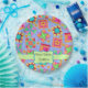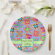 For a birthday for a quilter - serve with this paper plate with the customizable words "Happy Birthday" and personalized with her or his name. This party plate combines favourite quilt blocks plus unique blocks to form a quilt design with vibrant and dynamic colours on a periwinkle lavender purple background. A light green bar and emblem gives a place for the customizable words. The patchwork blocks feature stars, applique, pinwheel, log cabin and other favourite quilt blocks. Small flowers and blue dots are on the background between the tossed blocks. This quilt art is from fabric and quilt designer Phyllis Dobbs and is available on coordinating products in this store. Fully customizable - change the words for a quilt meeting or event.