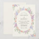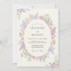 This design features a soft watercolor arrangement of lavender sprigs, peach roses, and lilac blossoms. The airy palette of pastel purples and warm peaches creates a romantic and whimsical atmosphere for a seasonal event. Delicate greenery and foliage accents complete the botanical aesthetic, offering a graceful and polished feel for a springtime nuptial.