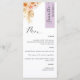 Why spend in place cards and menu cards when you can have an elegant All-in-one elegant Menu personalized with each guest name! Contemporary, simple and elegant design with exquisite watercolor floral detail in a beautiful blend of peach, orange, blush, dusty rose, cream and champagne hues. Modern hand written calligraphy elements. Stripe on the top right corner in lavender purple tone with guest name in black. Back in same lavender purple as stripe. Ability to change both stripe colour or back by selecting "customize further". NOTE: please an individual order for each menu by adding guest name into menu, add menu into shopping cart; then come back to menu, add second guest name, add menu to shopping cart...continue with this process with all guest names on your list. Zazzle does not receive guest names lists to print. For short first guest names add with your keyboard spacebar a few empty "spaces" before name to centre. Design available in a variety of colour choices. Part of our "Peach Floral Delight in Lavender Purple" collection with a variety of coordinating products available. Visit the entire collection at: https://www.zazzle.com/collections/peach_delight_floral_and_lavender_purple-119272840408758311