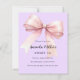 A soft lavender, purple coloured background, decorated with a large pink bow. Personalize and add a name and party details.