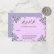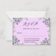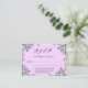 A RSVP card decorated with lavender flowers and greenery. Pink background. Personalize and add the reply by date.