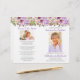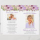Pretty lavender purple floral funeral program template features photos on the front and back along with an order of service, a poem, loving family names and thank you from the family. These programs print front and back on letter-size paper that you will need to fold in half. A pretty floral design for a Celebration of Life memorial program.
