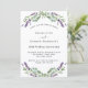 A white background decorated with lavender flowers and eucalyptus greenery. Personalize and your names and details.