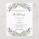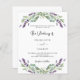 A white background decorated with lavender flowers and eucalyptus greenery. Personalize and your names and details.
