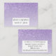 This chic and glamourous business card features a lavender purple glitter gradient background. The glitter appears darker and more condensed near the top and gradually fades towards the bottom.