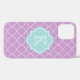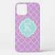 Lavender purple / lilac trellis lattice pattern iPhone 12 cover Elegant quatrefoil pattern with custom monogram K letter. Add your personalized name initial. Girlie vector design. Cute moroccan lattice design.