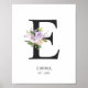 Lovely wall art decor for baby girl nursery and large letter 'E'. Watercolor floral pastel blush lavender, purple, lilac colors. Personalize it by adding baby's name. Background color can be changed. Perfect gift for newborn, baby shower, birthday....