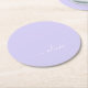 Lavender Purple Modern Script Girly Monogram Name Round Paper Coaster