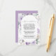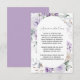 a beautiful wreath of lavender and purple blooms surrounds your enclosure details. Easy to personalize with your own information.