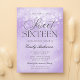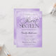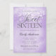This modern lavender purple sweet 16 invitation features a trendy sparkle lights background and elegant script font. A glamourous invitation that you can edit yourself using the online template tools.
