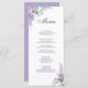 This lavender-purple wedding menu card features white and purple watercolor peonies, lavender, geometric shapes, and elegant modern typography. Ideal for an outdoor wedding. Find matching items in Lavender Purple Floral Wedding Collection.
