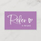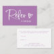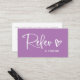 These trendy and chic lavender purple business referral cards feature modern, handwritten white script and a cute scribbled heart for a casual, simple look. The back has several fields that you can customize with your retail shop or company information.