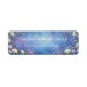 Add a touch of royal elegance to your envelopes with this beautifully detailed botanical layout. The design is anchored by lush corner arrangements of ivory rose bloom and lavender rose bloom clusters, each meticulously rendered with a shimmering gold edge on every petal. These florals are set against a rich, deeply textured blue violet background that features a painterly watercolor feel, complemented by delicate sprays of tiny pink and white wildflower. This return address label is a premier choice for formal wedding invitations, elegant garden-themed celebrations, or sophisticated spring mailings. It ensures your correspondence carries a sense of high-end, organic grace from the moment it is received.