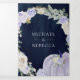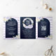 Lavender Roses Pumpkin QR Code Navy Blue Wedding Tri-Fold Invitation