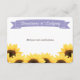 A SUNFLOWER ENCLOSURE INSERT CARD WITH COUNTRY CHARM AND A RUSTIC FEEL WITH A LAVENDER LIGHT PURPLE PRINTED RIBBON LOOK BANNER. A BOUQUET OF GOLDEN YELLOW SUNFLOWERS HAVE A VINTAGE AND PAINTERLY LOOK. PERFECT FOR A WEDDING ANNIVERSARY ENGAGEMENT BIRTHDAY OR ANY SPECIAL OCCASION PARTY WITH A BARNYARD BARN OR FARMHOUSE THEME. ADD ANY ADDITIONAL INFO THAT YOU NEED INCLUDING DIRECTIONS OR LODGING FOR YOUR GUESTS. DESIGN © CHRISSY H. STUDIOS, LLC. ALL RIGHTS RESERVED.