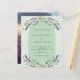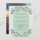 A sage green background decorated with purple lavender flowers, eucalyptus greenery and an arch frame. Personalize and your names and details.