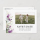 Lavender Save The Date with Photo Postcard. This stylish & elegant Wedding Table Numbers features gorgeous hand-painted watercolor Purple Greenery Lavender. Find matching items in the Purple Greenery Lavender Collection.