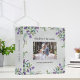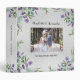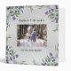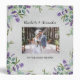 A faux silver looking background decorated with lavender florals and eucalyptus greenery. Personalize and add a photo, your names and wedding date.
