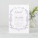 This first birthday invitation features a lavender floral frame adorned with butterflies and ribbons.