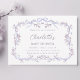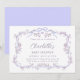This girl baby shower invitation features a lavender floral frame adorned with butterflies and ribbons.